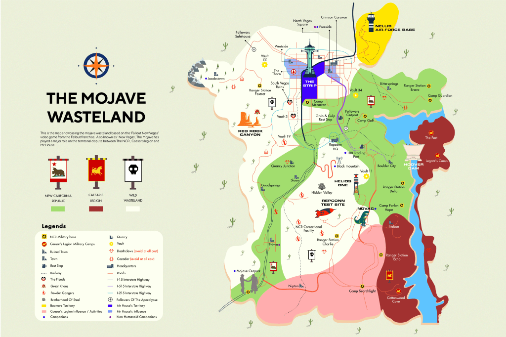 “They’re slavers, led by a guy named Caesar. Or Caesar. Not sure how you’re supposed to say it. A couple of years ago they tried to take over Hoover Dam, but the NCR beat them back. The NCR didn’t – or couldn’t – finish the job, though. The Legion’s got its strength back and is getting ready for another round at the Dam. My money’s still on the NCR winning, but you never know. We’ve been hearing stories about Legionaries on the Nevada side of the river, so keep a gun handy. You don’t want to get caught by them.”